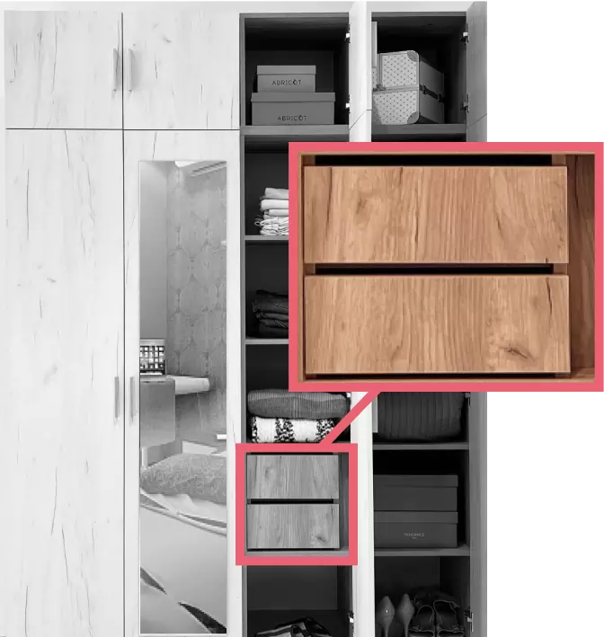 We have a large number of wardrobes in stock and if the deadlines are running out, you can choose from the availability and pick up at the same day. If the desired wardrobe was not found, then in just 7 days we will produce one according to your needs.